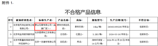 此外,除了防水卷材产品,北新建材旗下泰山石膏有限公司生产的泰和东新白乳胶在今年8月北京市市场监督管理局的质量监督抽查中,因包装标志不符合标准上榜。